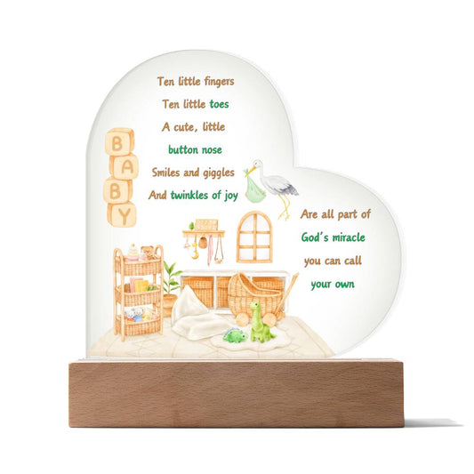 God's Miracle Acrylic Printed Heart Plaque (Choose with or without LED)