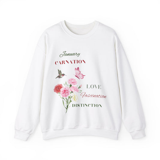 January Carnation Birth Flower Unisex Heavy Blend™ Crewneck Sweatshirt