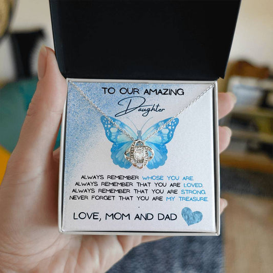 To Our Amazing Daughter Love, Mom and Dad Love Knot Necklace