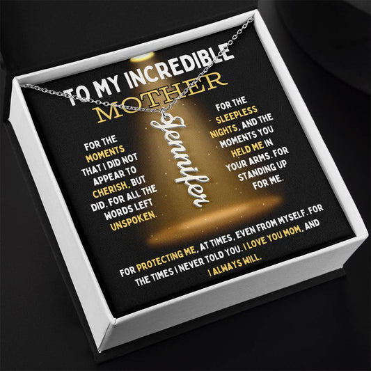 To My Incredible Mother Vertical Name Necklace
