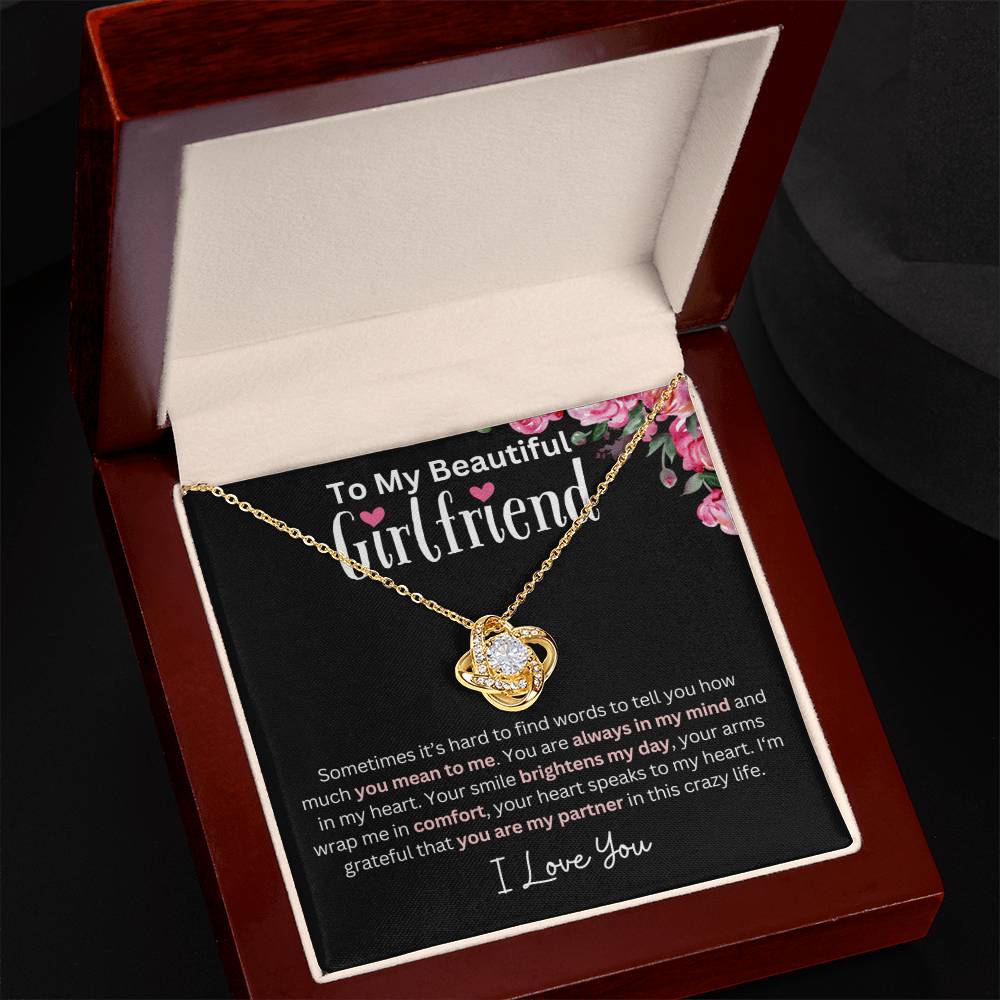 Imagine her reaction receiving this beautiful Love Knot Necklace. Representing an unbreakable bond between two souls, this piece features a beautiful pendant embellished with premium cubic zirconia crystals. Surprise your loved one with this gorgeous gift today!
